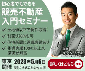 不動産バナー 投稿日: 2026年1月5日2026年3月4日 投稿者: Kazu 競売不動産入門セミナーバナーデザイン 使用ツール:Photoshop 制作時間:3h イメージカラー:青、緑 目的 ・競売不動産セミナー開催告知 ・セミナー申し込み誘導